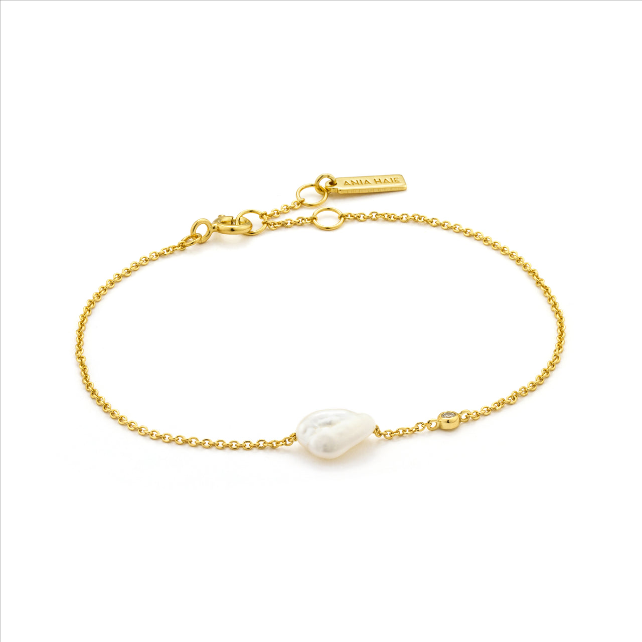 Yellow Gold CZ Pearl of Wisdom Bracelet