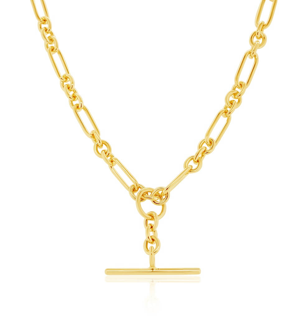 9ct Yellow Gold Silver Filled T Bar Chain Necklace