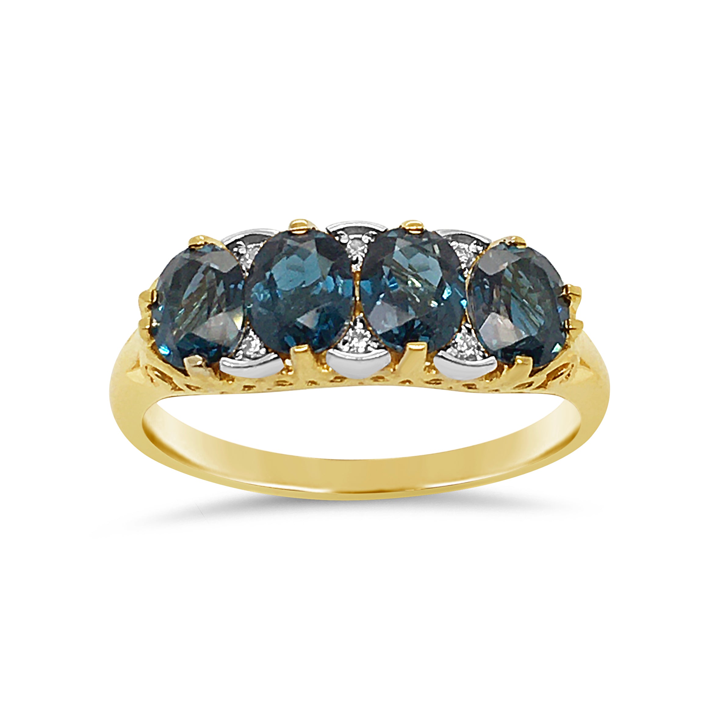 9ct Yellow Gold London Blue Topaz & Diamond Ring