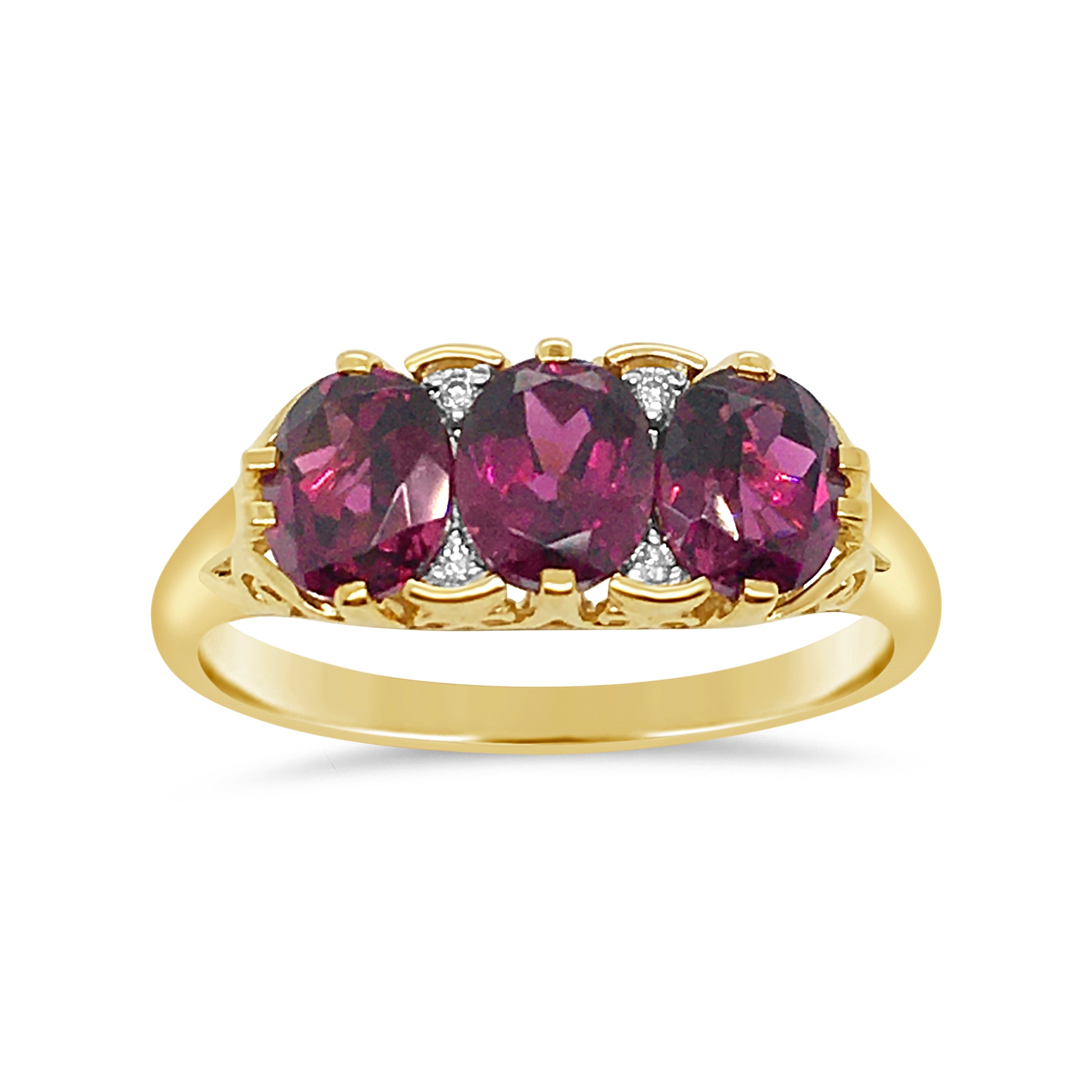 9ct Yellow Gold Rhodolite Garnet & Diamond Ring
