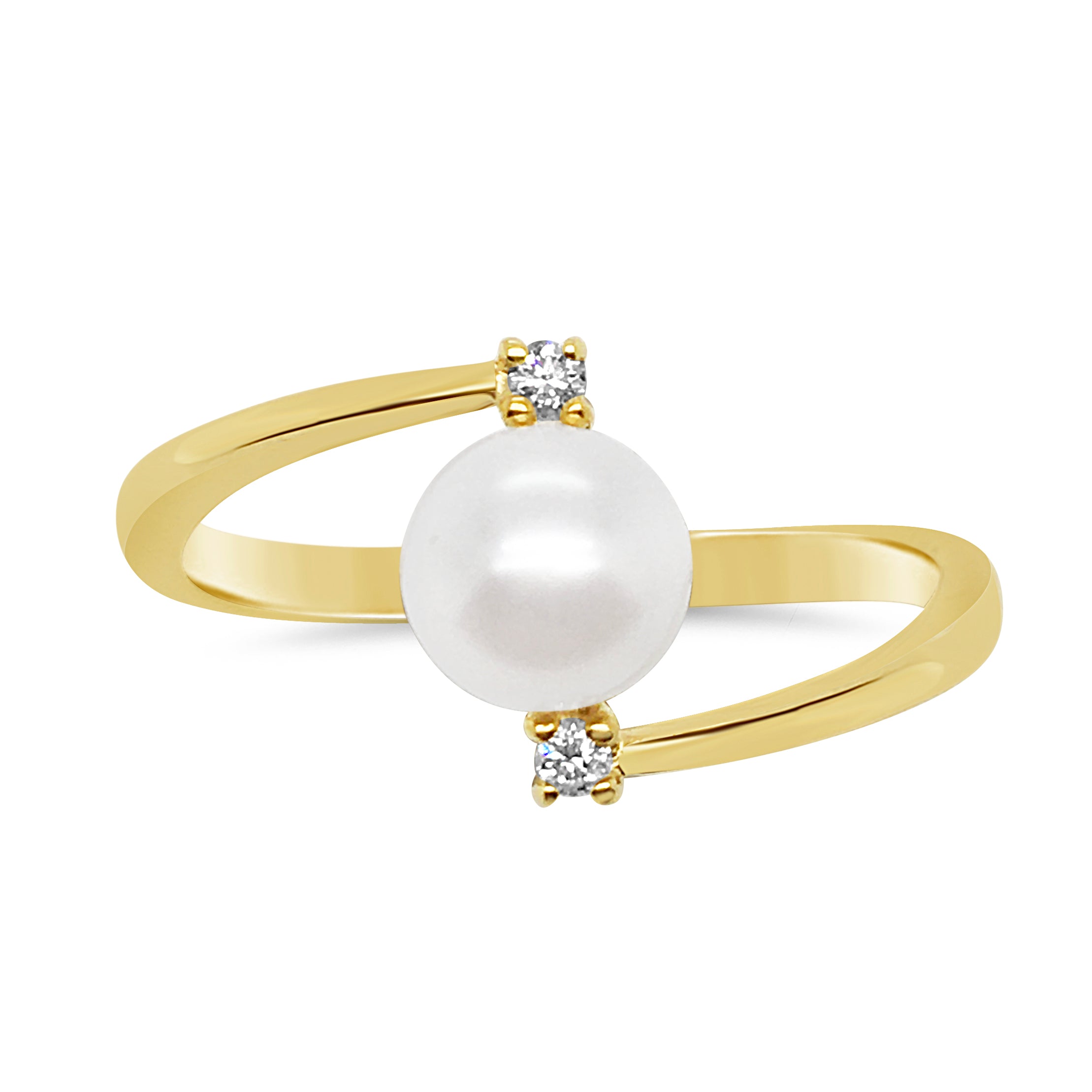 9ct Yellow Gold Keshi Pearl & Diamond Ring