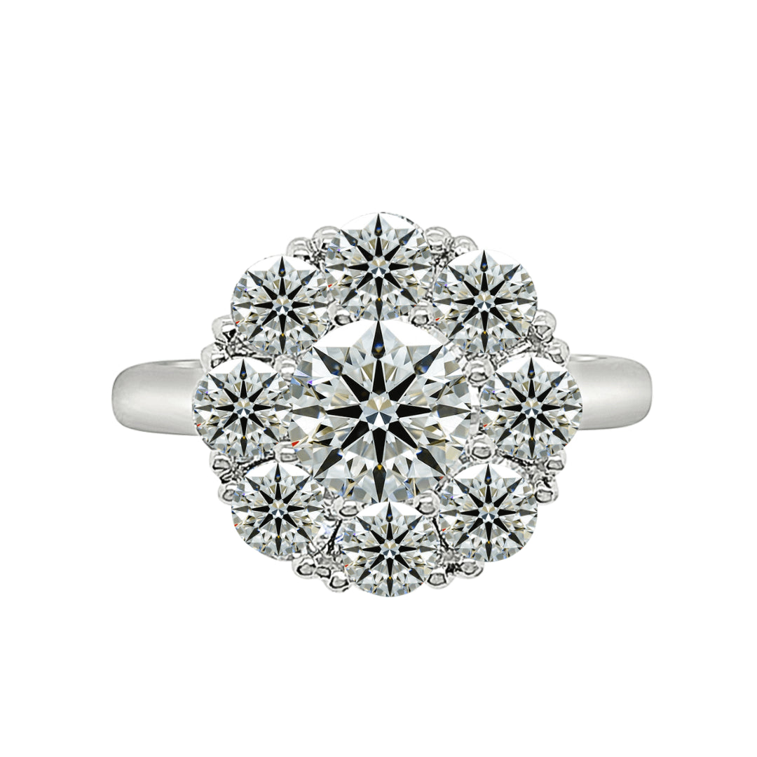 18ct White Gold 1x1.00ct F/P1 + 8=1.52ct G/P1 (2.52ct TW) Diamond Halo Cluster Ring With Signature Cert No.9010204