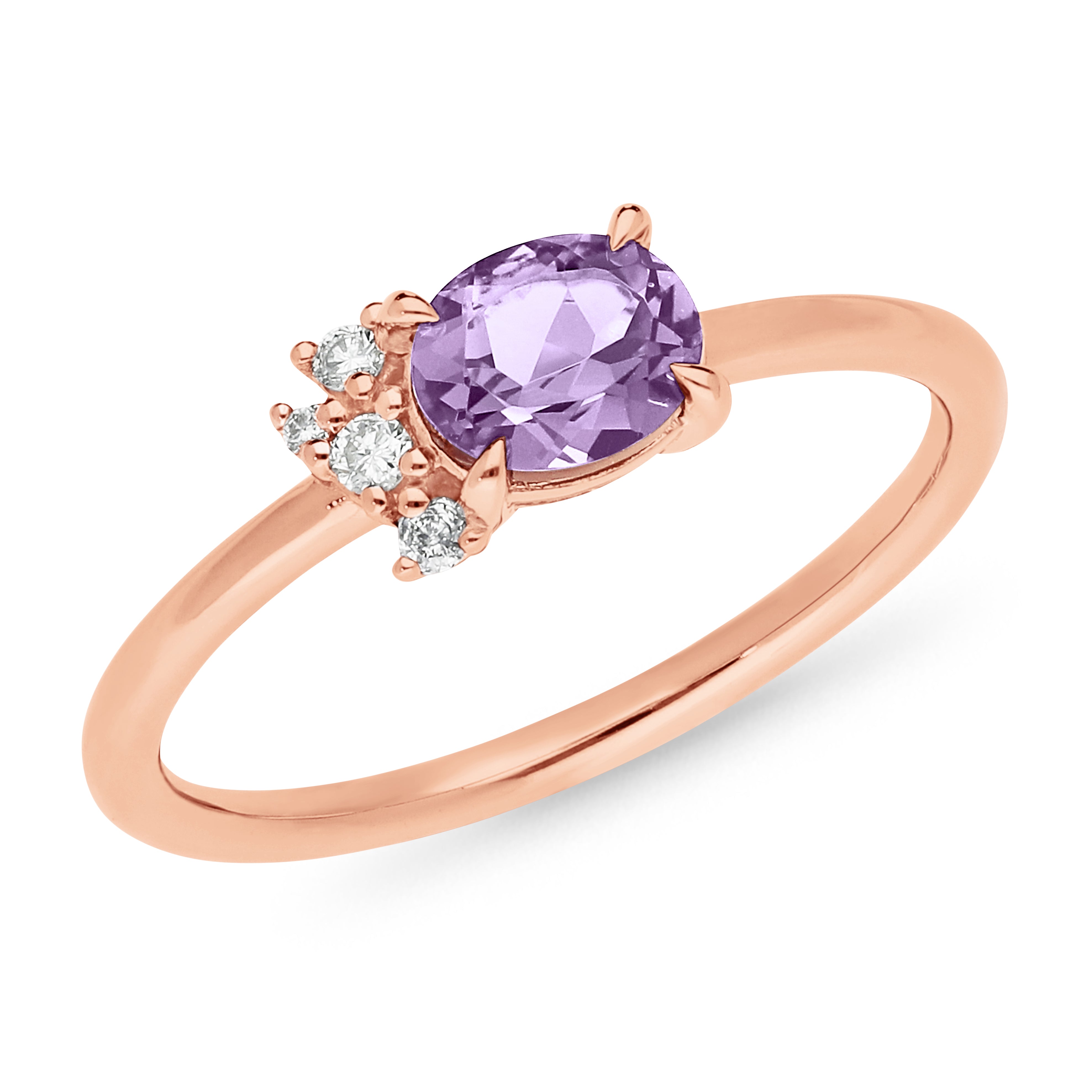 9ct Rose Gold Pink Amethyst & Diamond Ring