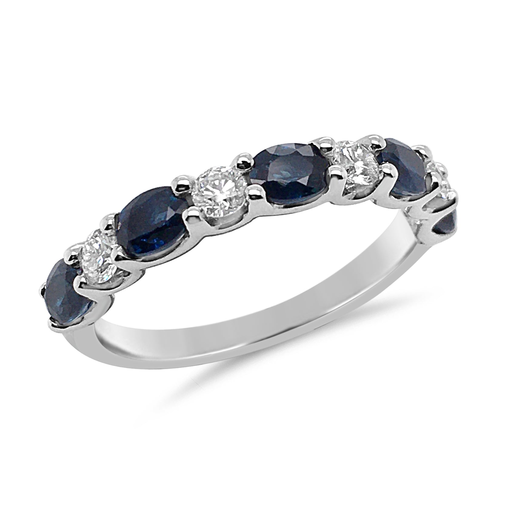 9ct White Gold 5x 4x3mm Oval Australian Sapphire + 4=0.32ct RBC Diamonds
