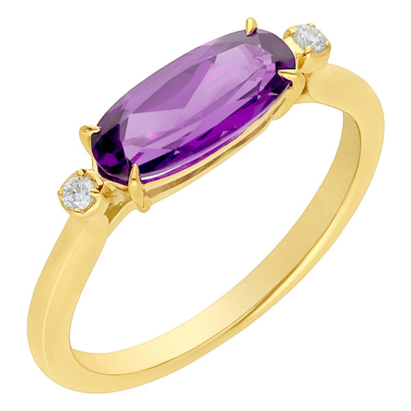 9ct Yellow Gold Amethyst & Diamond Ring