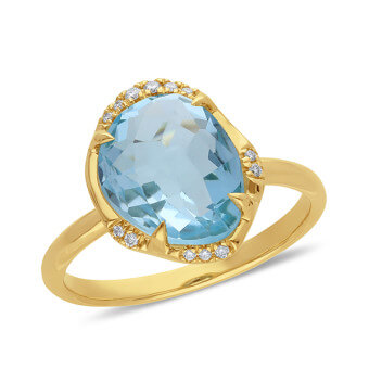 9ct Yellow Gold Blue Topaz & Diamond Ring