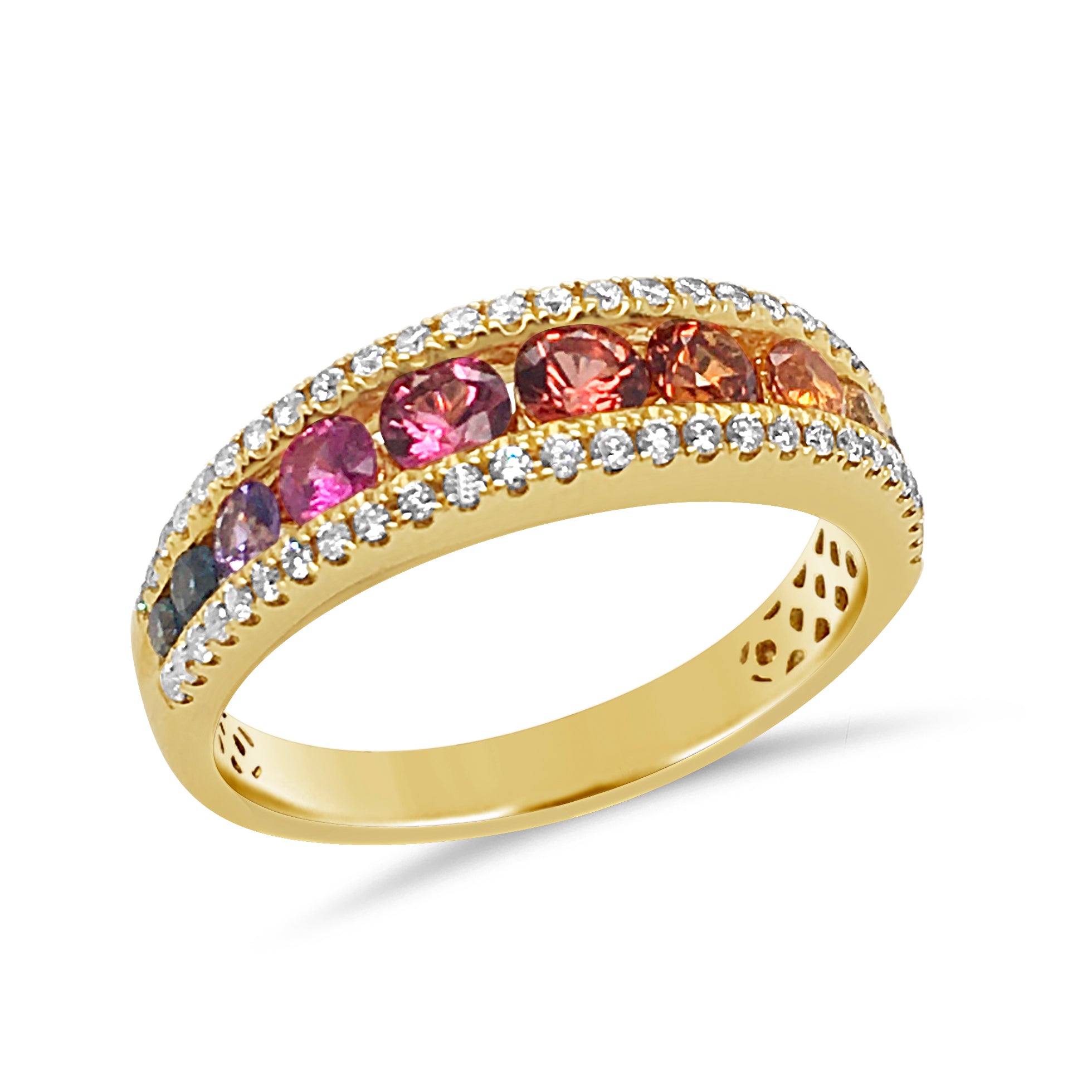 9ct Yellow Gold Diamond & Multi Coloured Sapphire Ring
