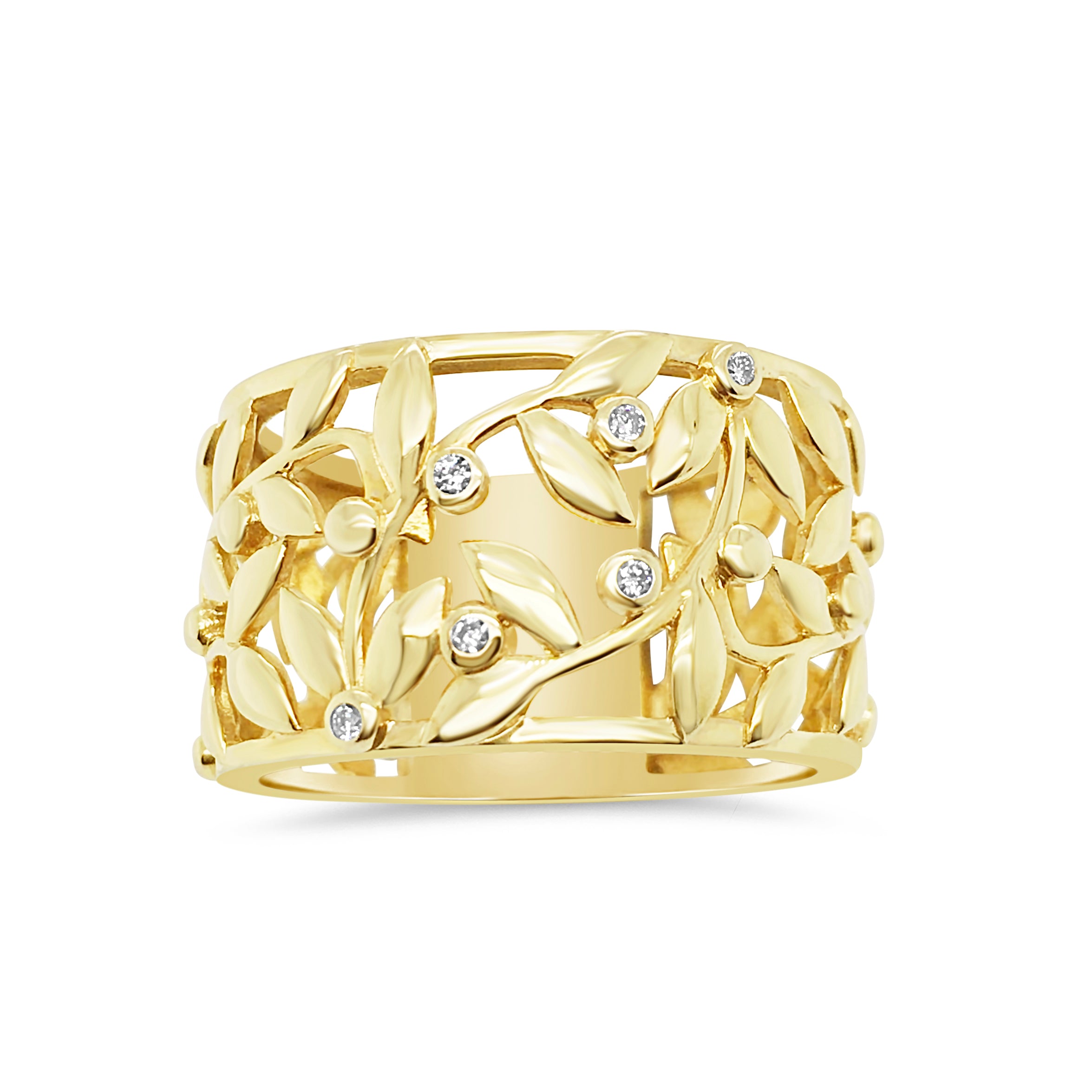 9ct Yellow Gold & Diamond Olive Leaf Ring