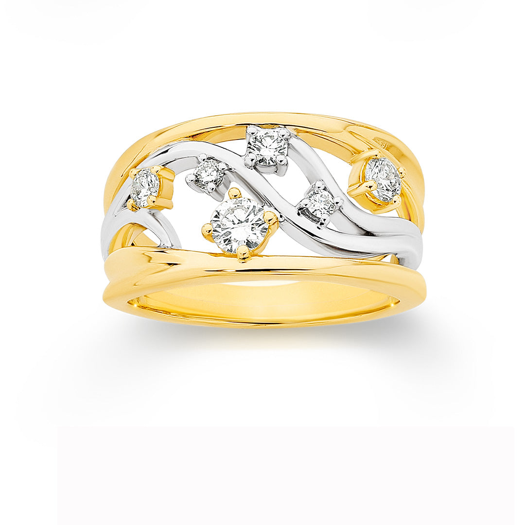 9ct Yellow & White Gold Diamond Cross Over Ring