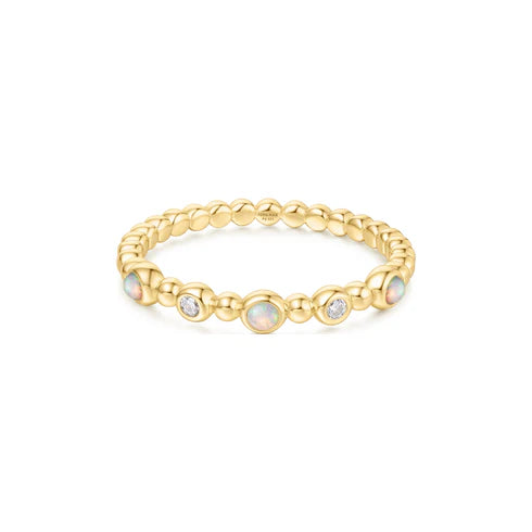Yellow Gold CZ Bezel Kyoto Opal Beaded Ring