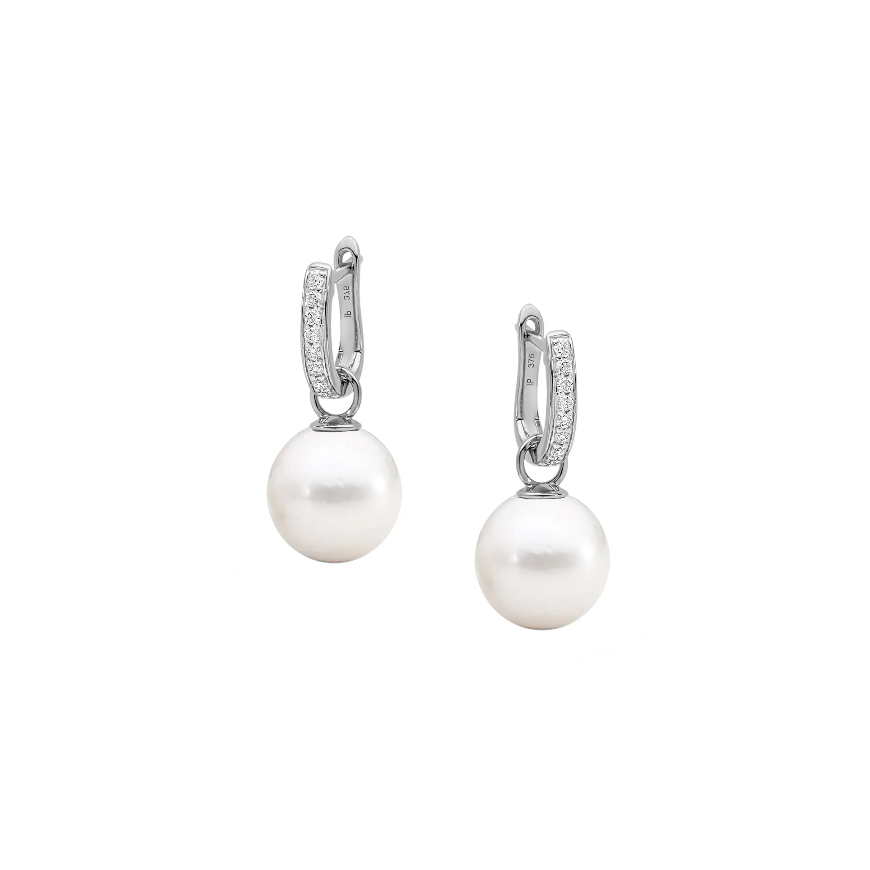 Yellow Gold Pearl & Diamond Huggie Earrings