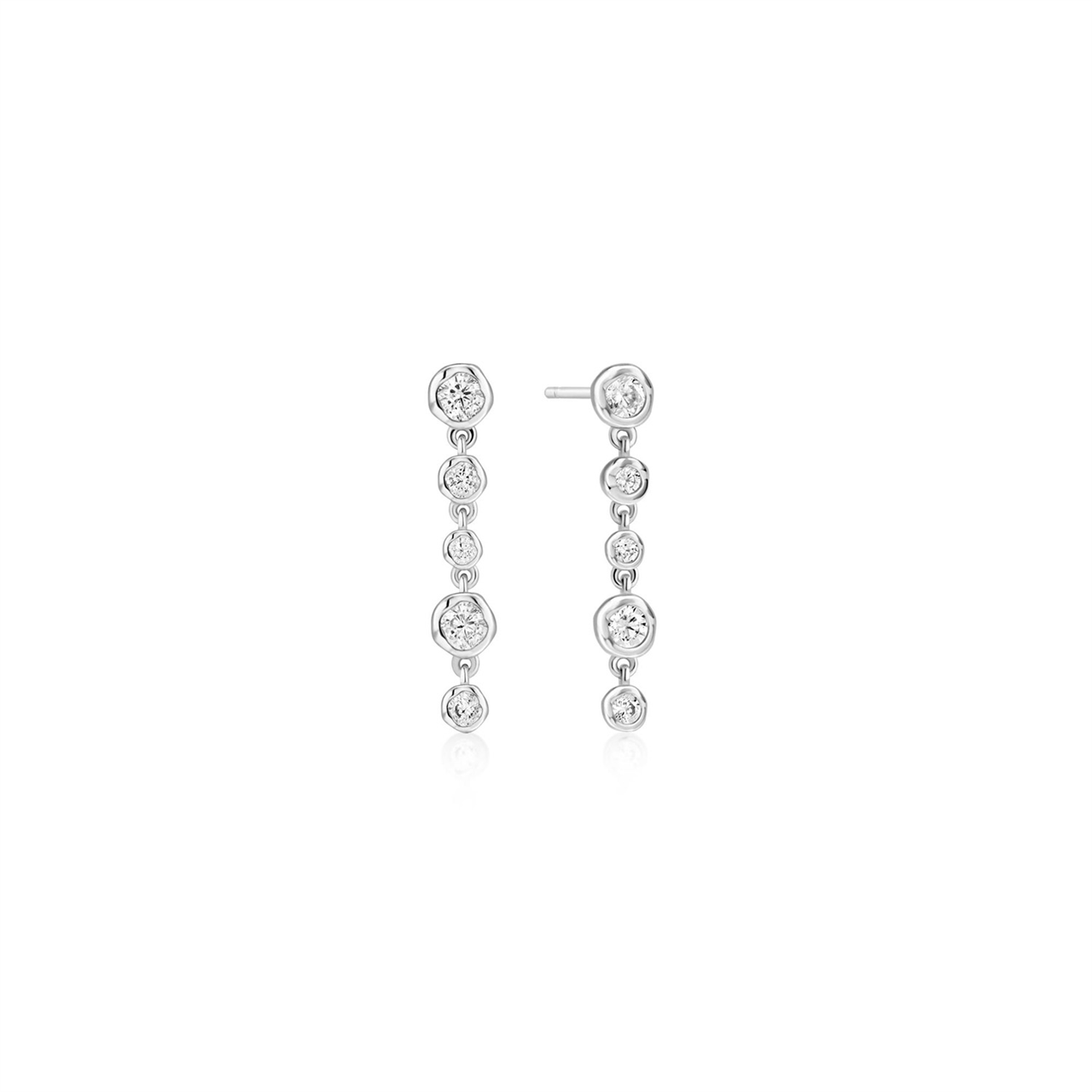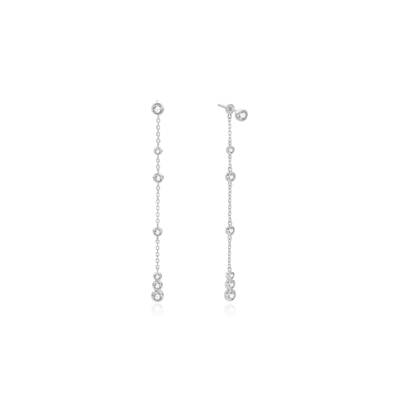 Sterling Silver CZ Station Bezel Drop Luna Studs
