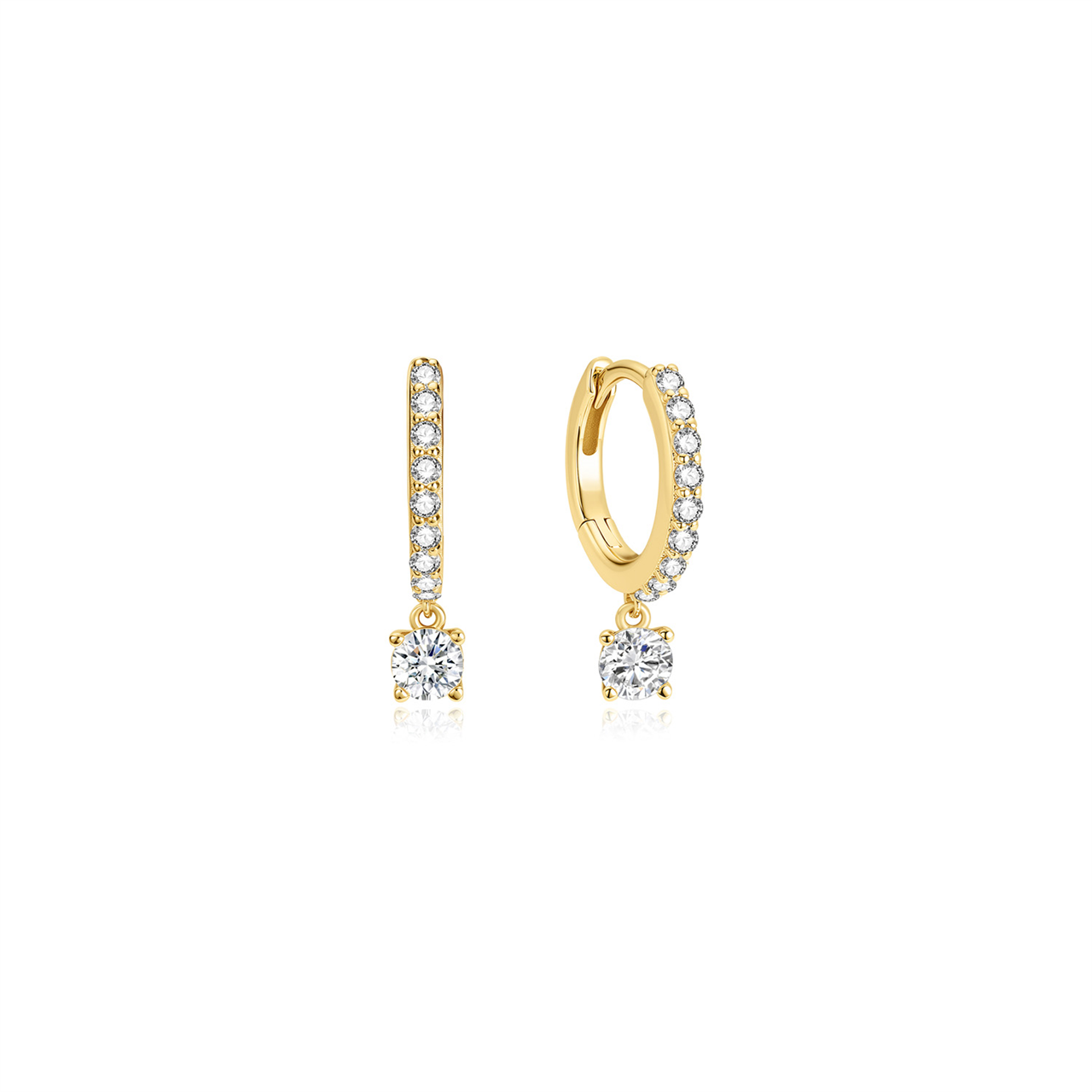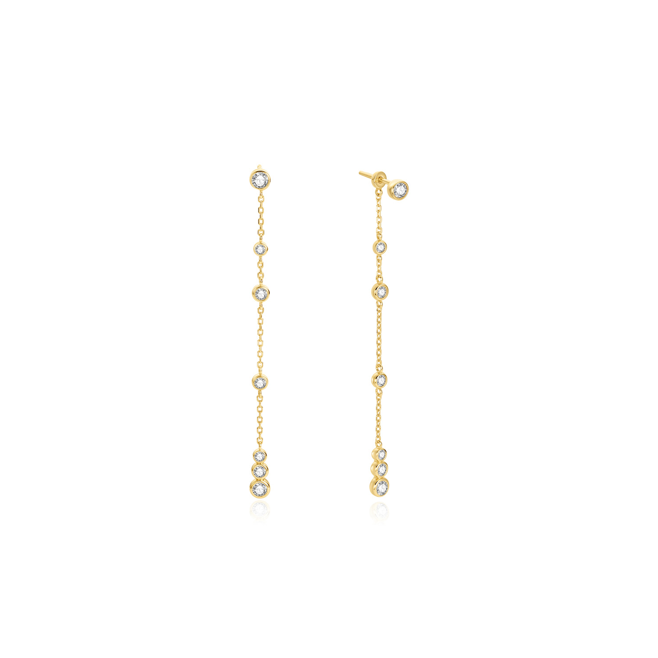 Yellow Gold CZ Station Bezel Drop Luna Studs