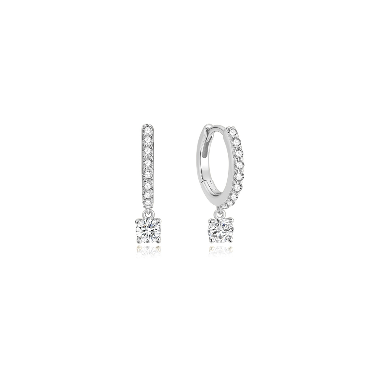 Sterling Silver CZ Drop Pave Luna Huggies