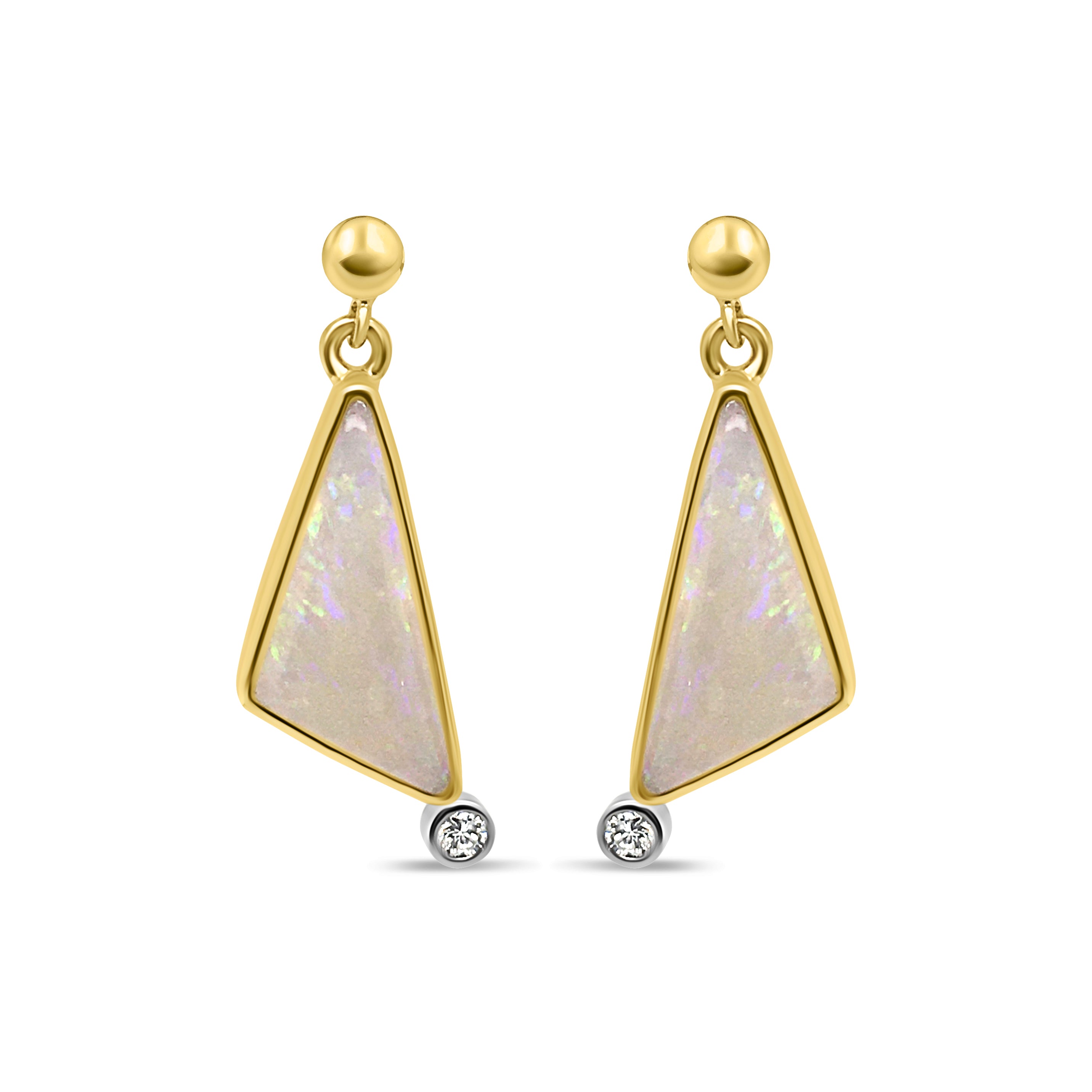 18ct Gold Solid Crystal Opal & Diamond Drop Earrings