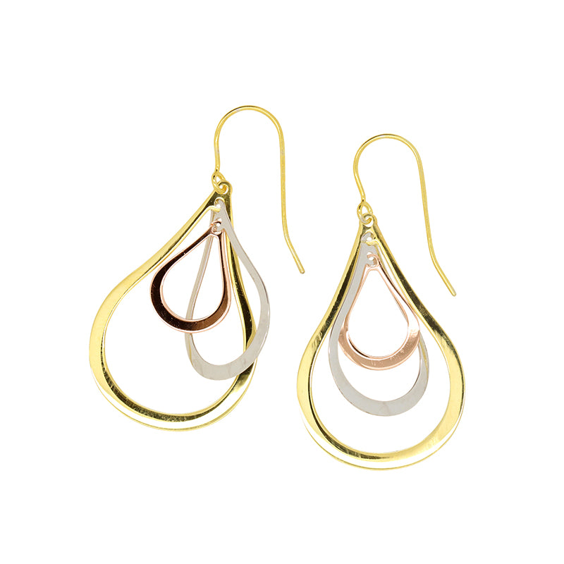 9ct Tri Colour STG Bonded Open Teardrop Earrings