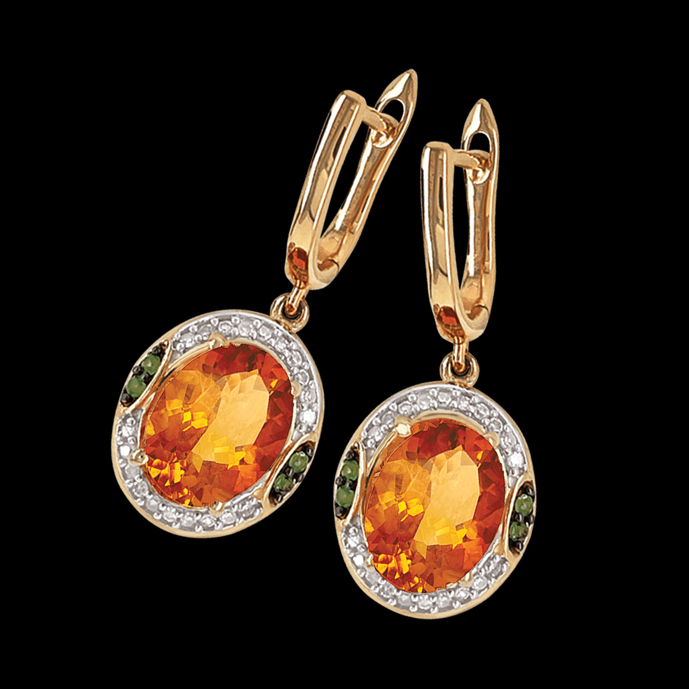 9ct Yellow Gold Citrine, Green Tsavorite Garnet & Diamond Earrings