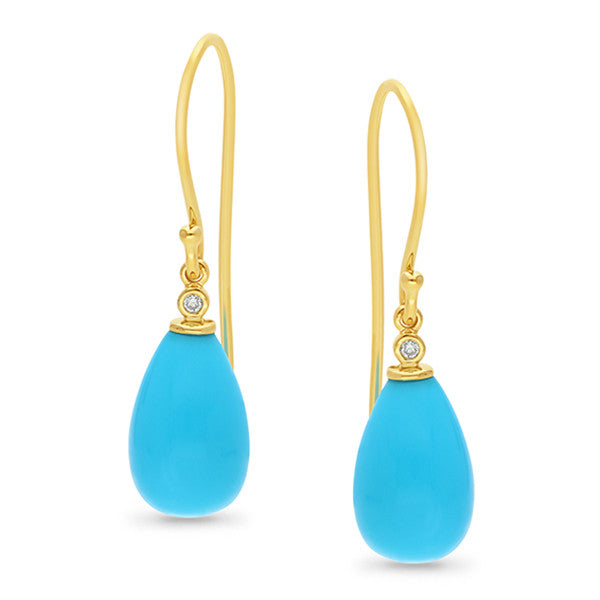 9ct Yellow Gold Turquoise & Diamond Drop Earrings