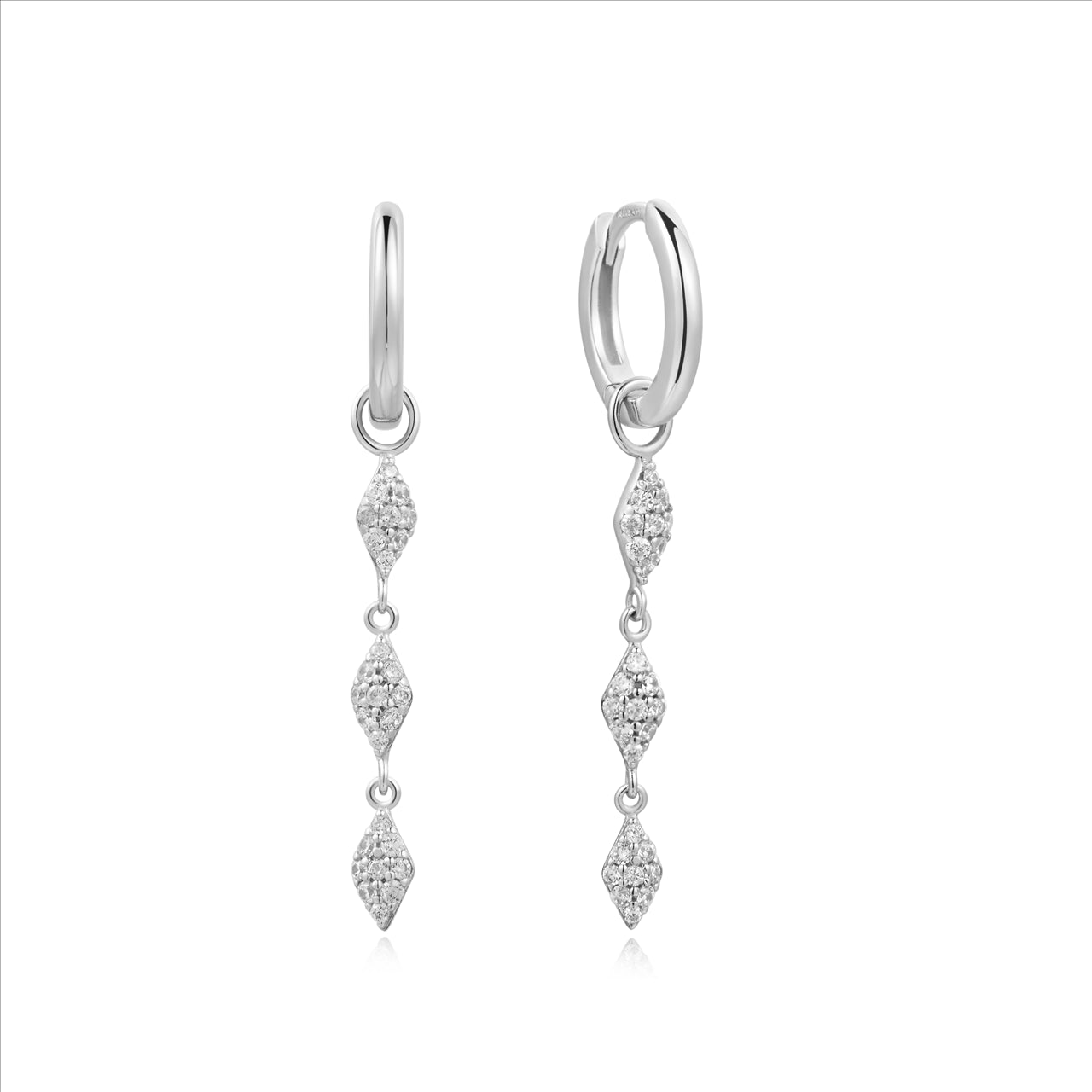 Sterling Silver CZ Dusk Divas Pave Sparkle Drop Huggies