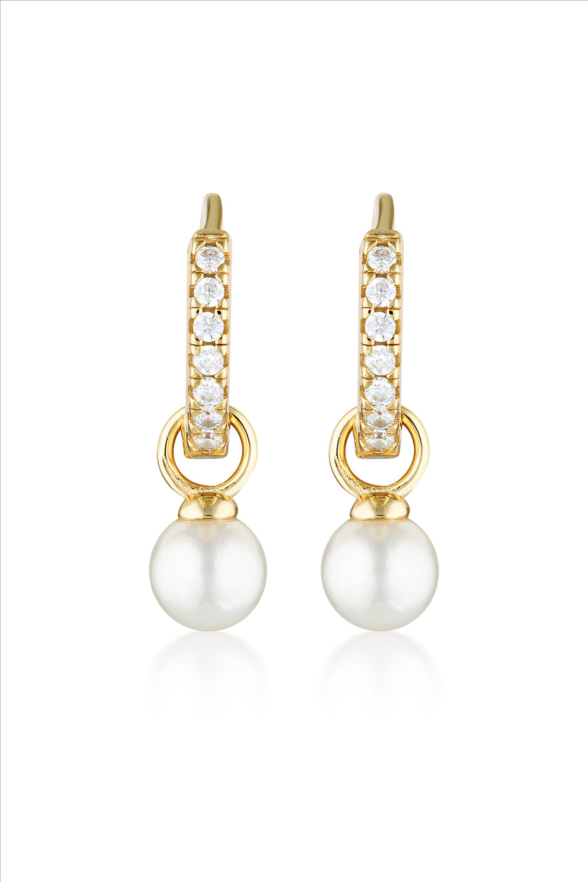 Yellow Gold CZ Baby Pearl Hoop Earrings