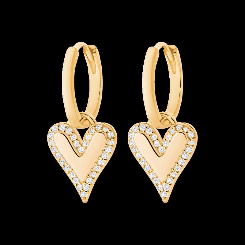 Yellow Gold CZ Heart Hoop Earrings
