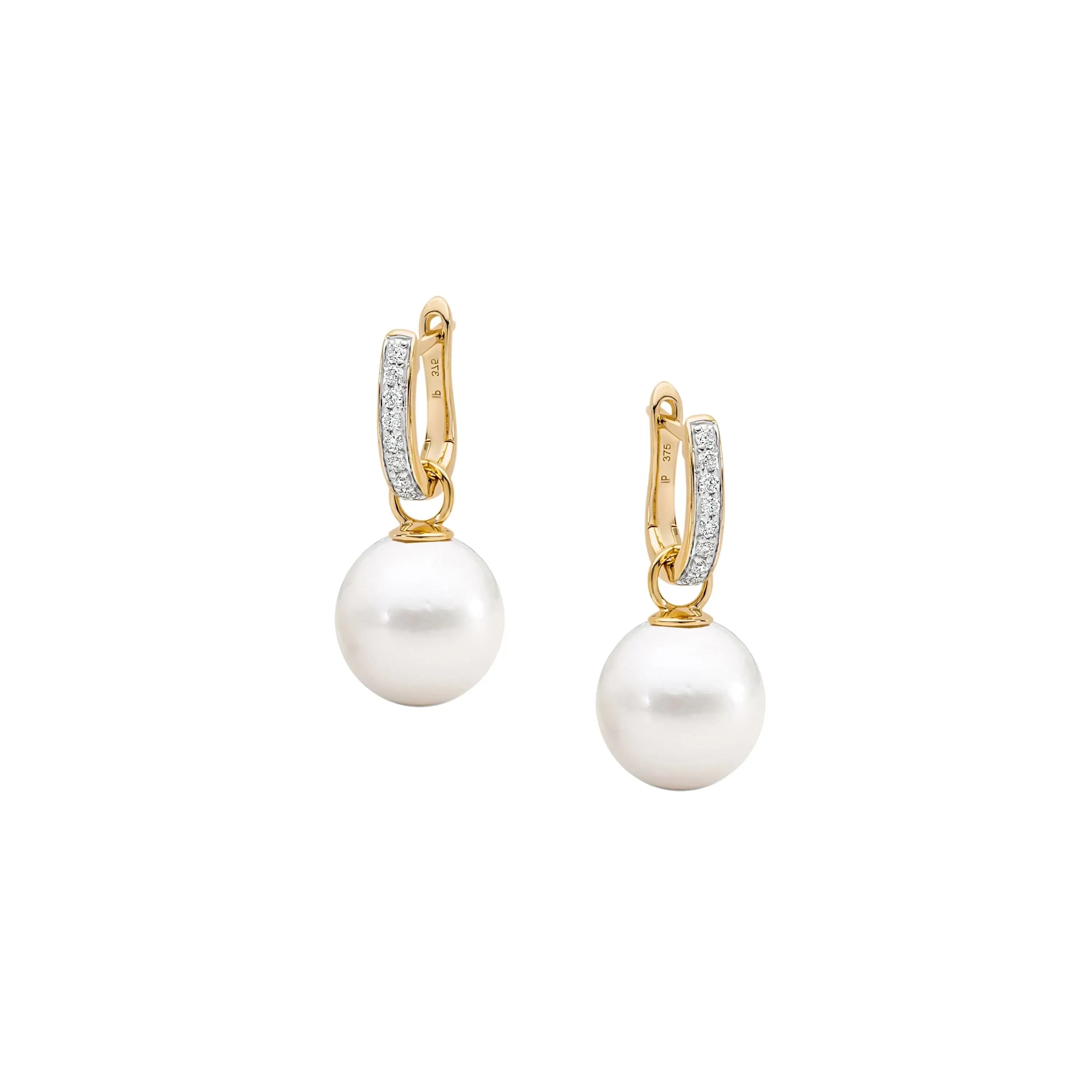 Yellow Gold Pearl & Diamond Huggie Earrings