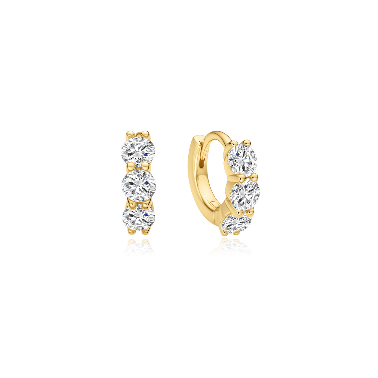 Yellow Gold CZ Trio Luna Huggies