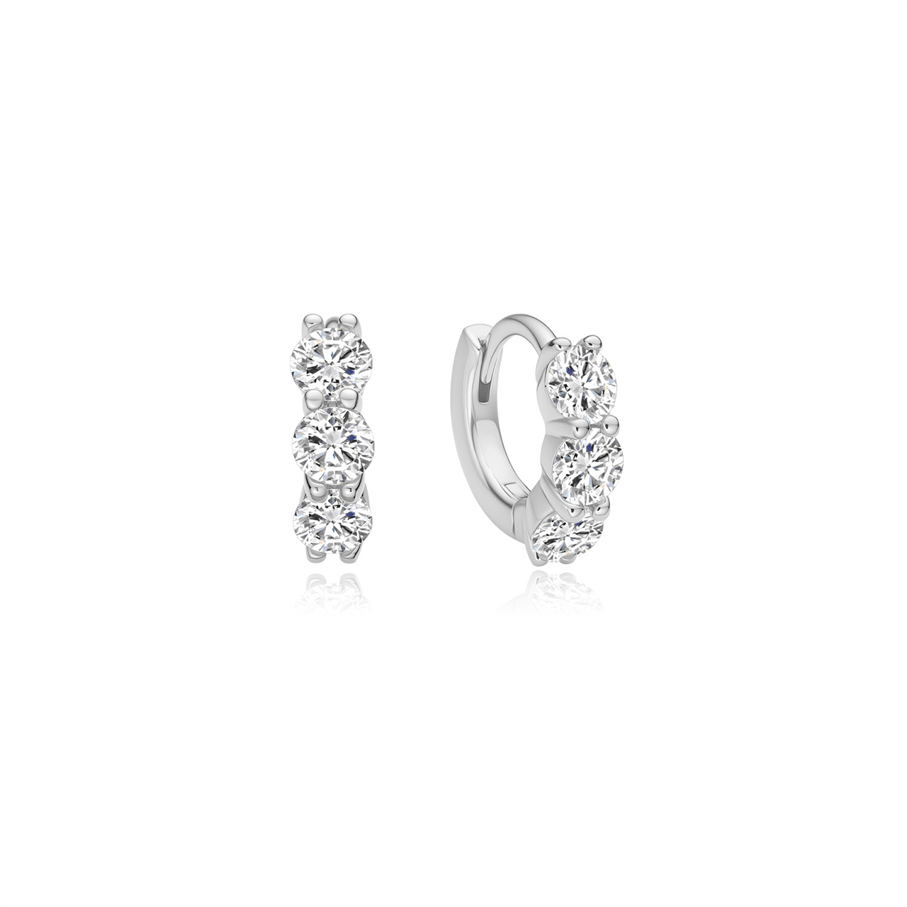 Sterling Silver CZ Trio Luna Huggies