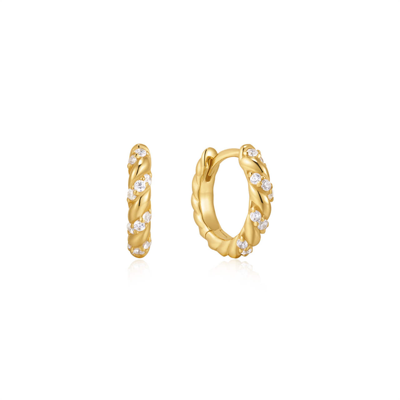 Yellow Gold CZ Twisted Luna Huggies