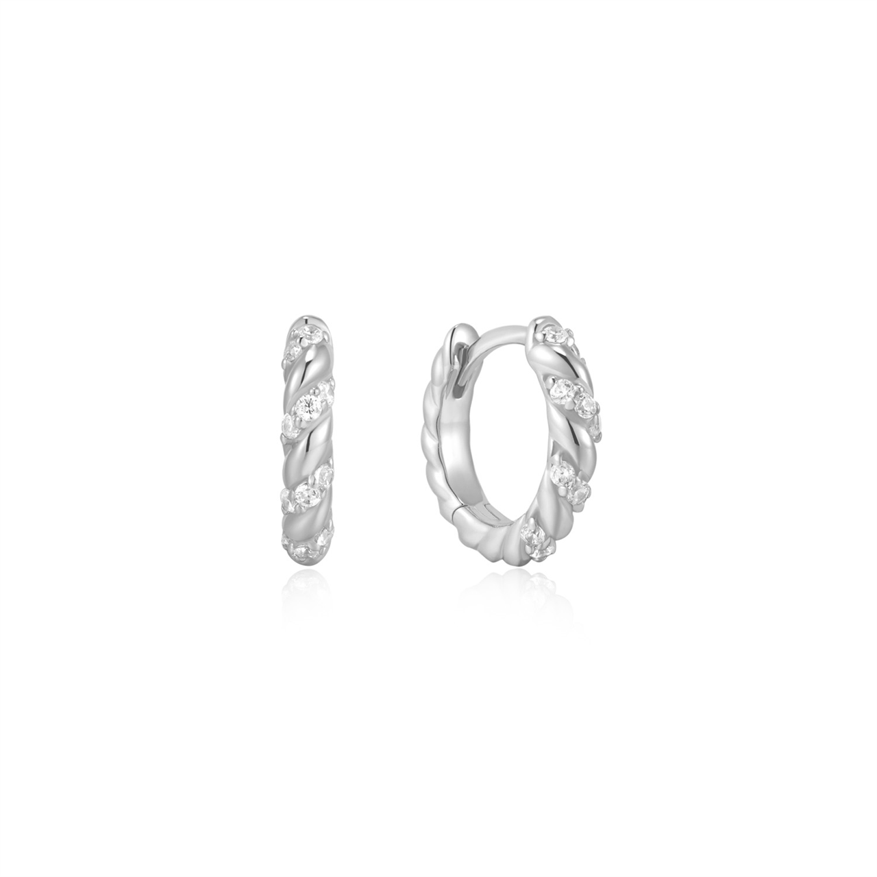 Sterling Silver CZ Twisted Huggies