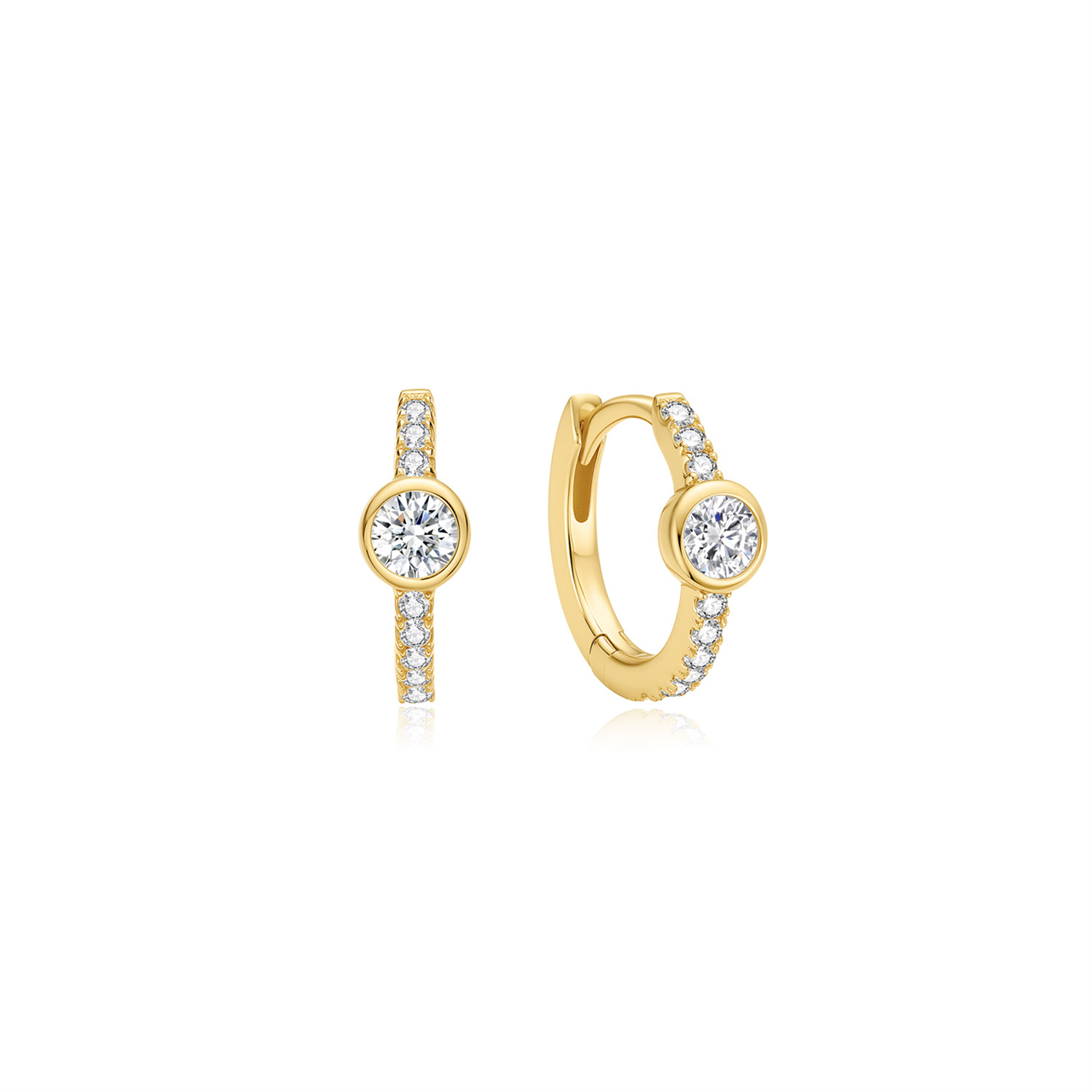 Yellow Gold CZ Pave Bezel Luna Huggies