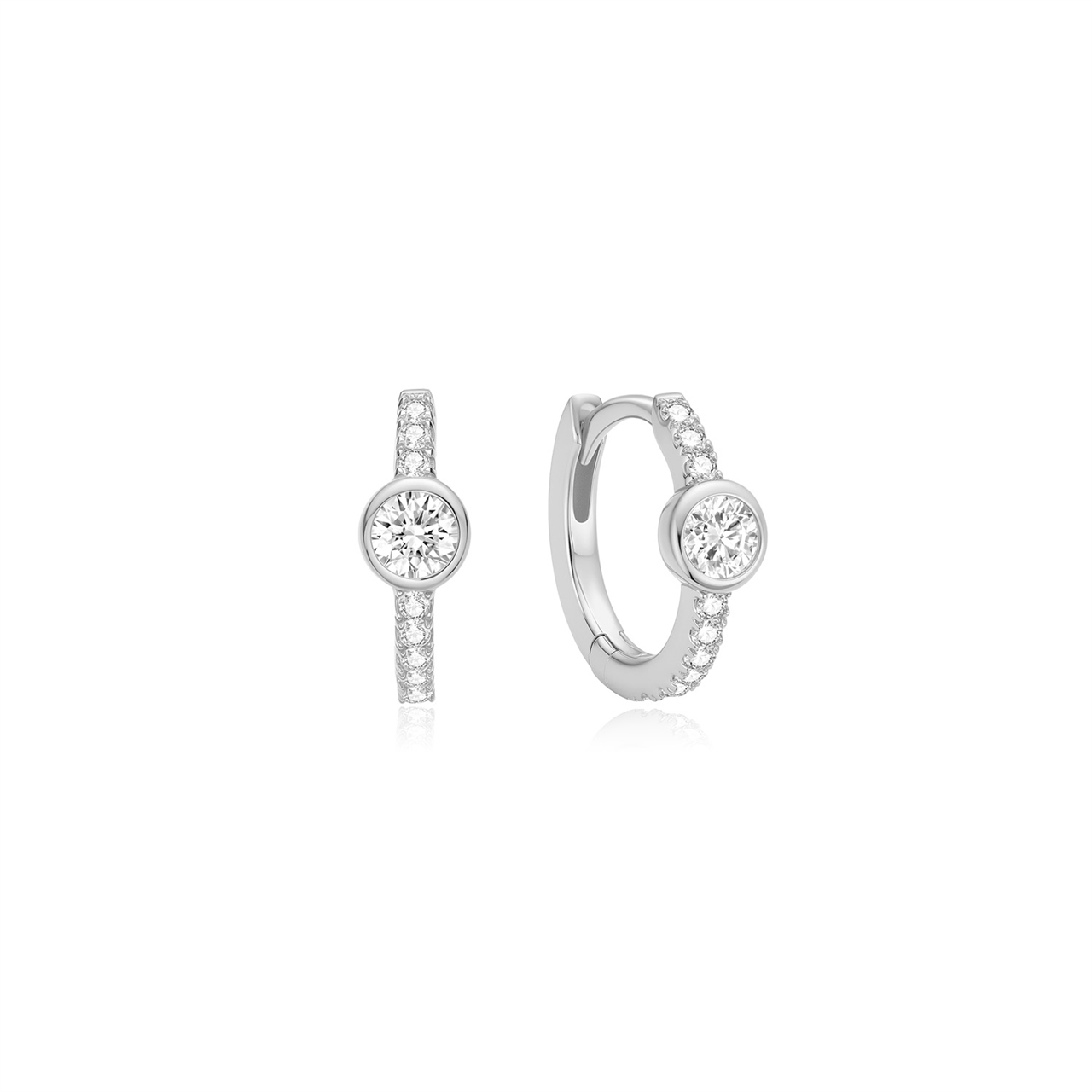 Sterling Silver CZ Pave Bezel Luna Huggies