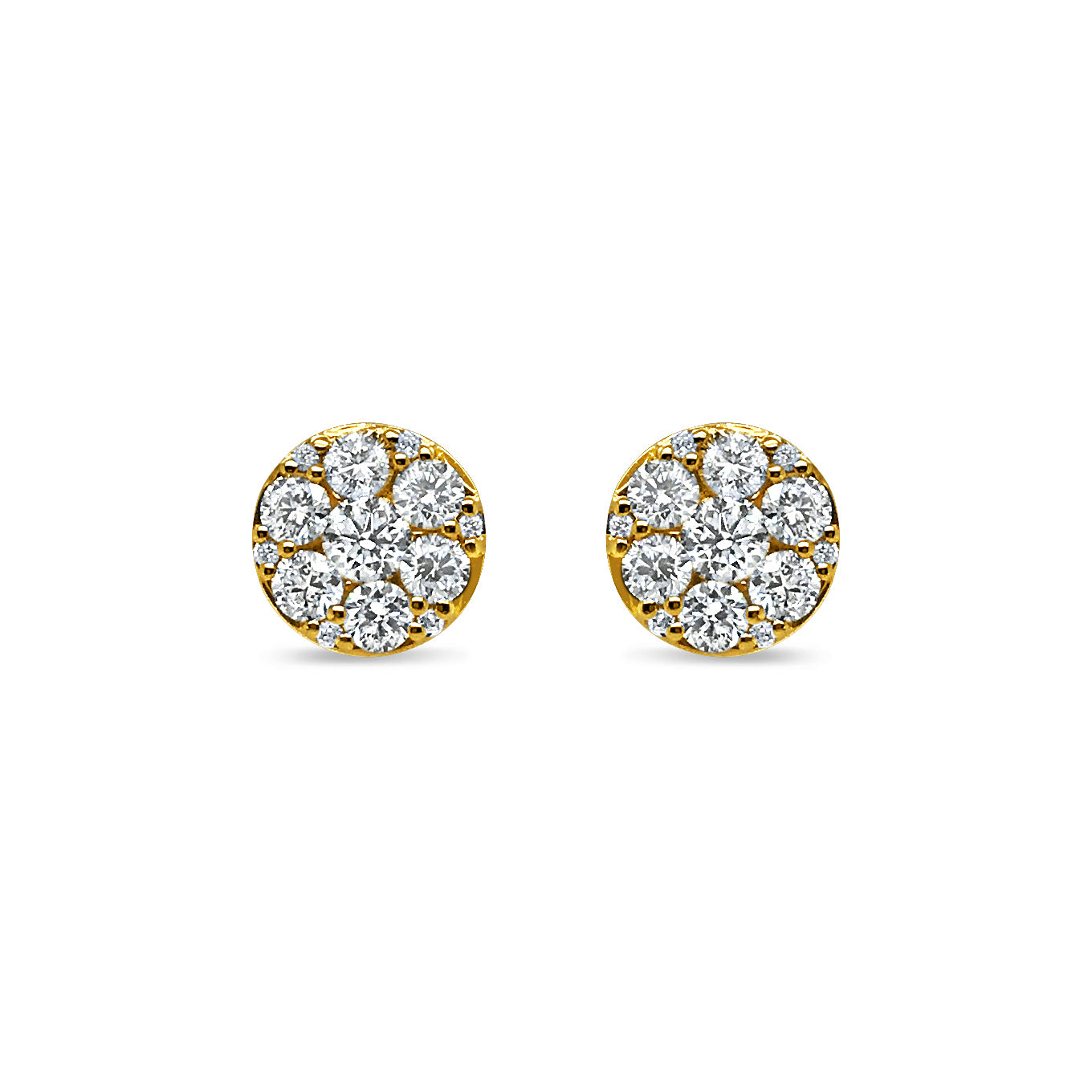 18ct Yellow Gold 0.95ct TW Diamond Blossom Cluster Stud Earrings