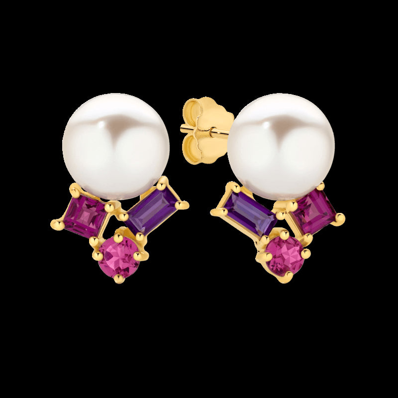9ct Yellow Gold Pearl Gemstone Stud Earrings