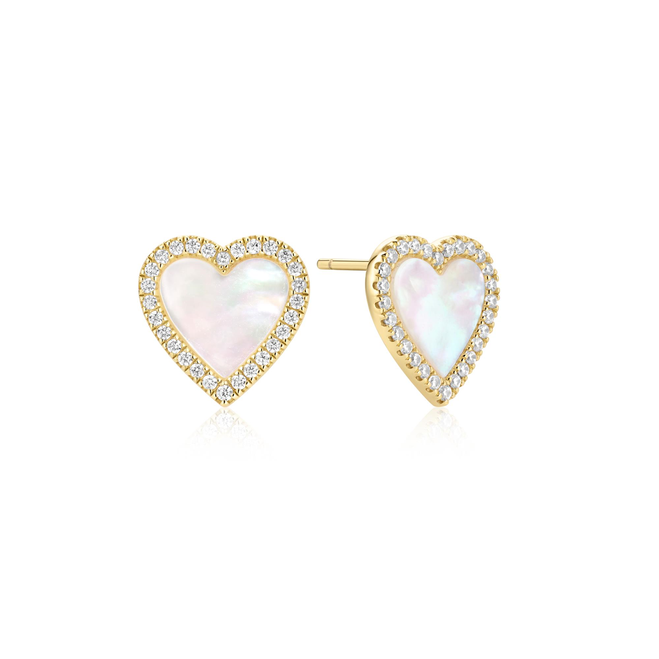 Yellow Gold CZ Mother of Pearl Glimmer Halo Heart Studs