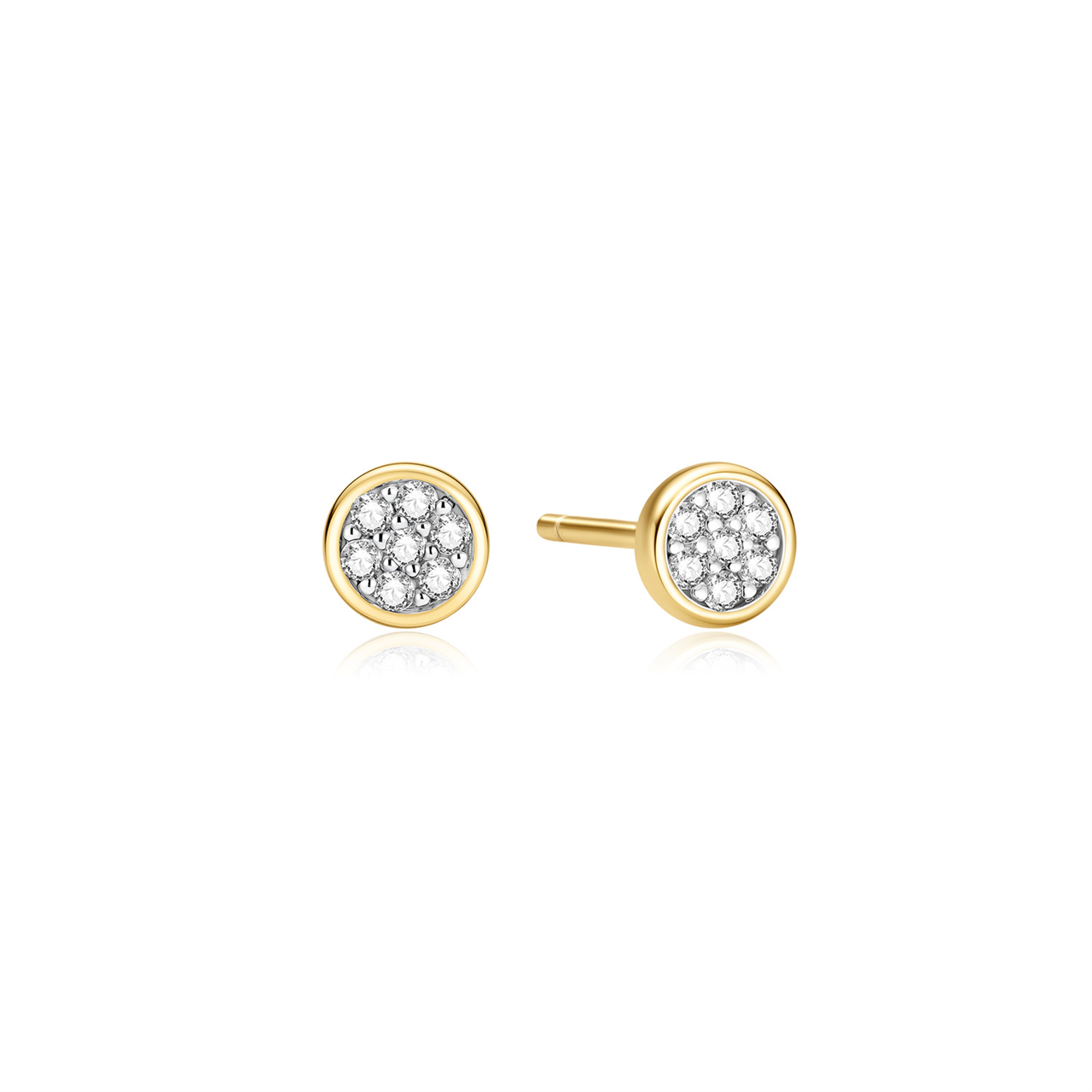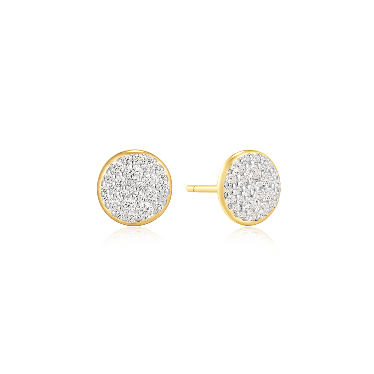 Yellow Gold CZ Small Pave Disc Luna Studs