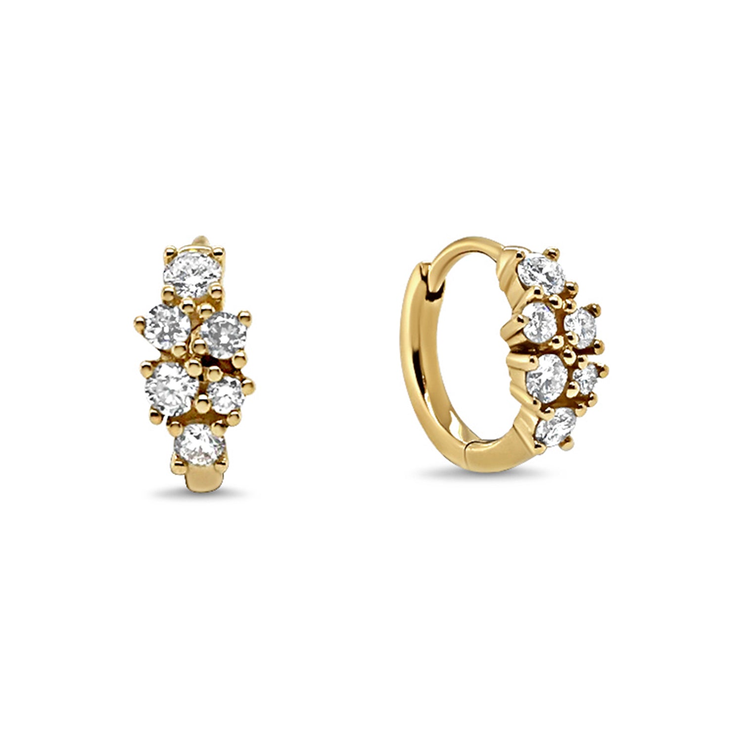 9ct Yellow Gold Diamond Cluster Small Huggie Hoop Earrings