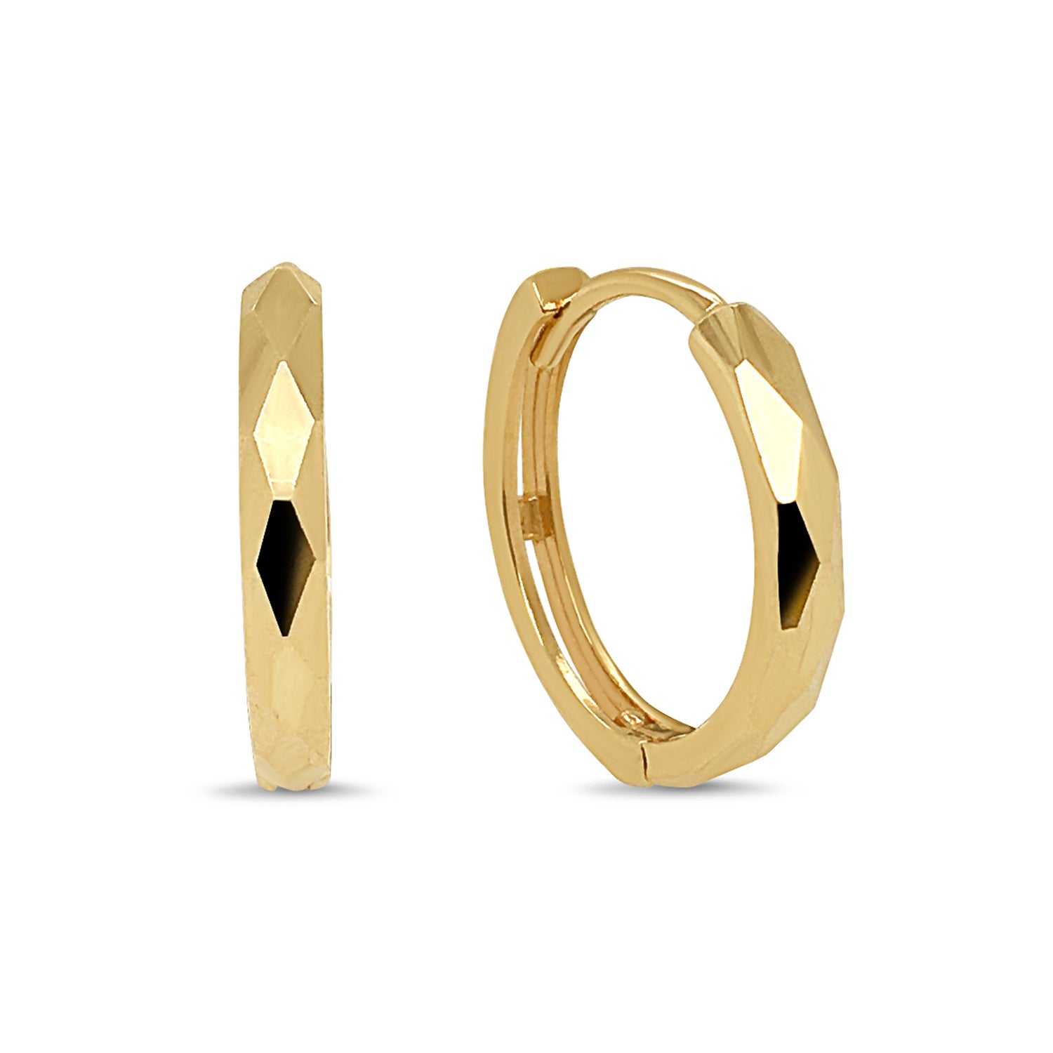 9ct Yellow Gold 12mm Diamond Facet Huggie Hoop Earrings