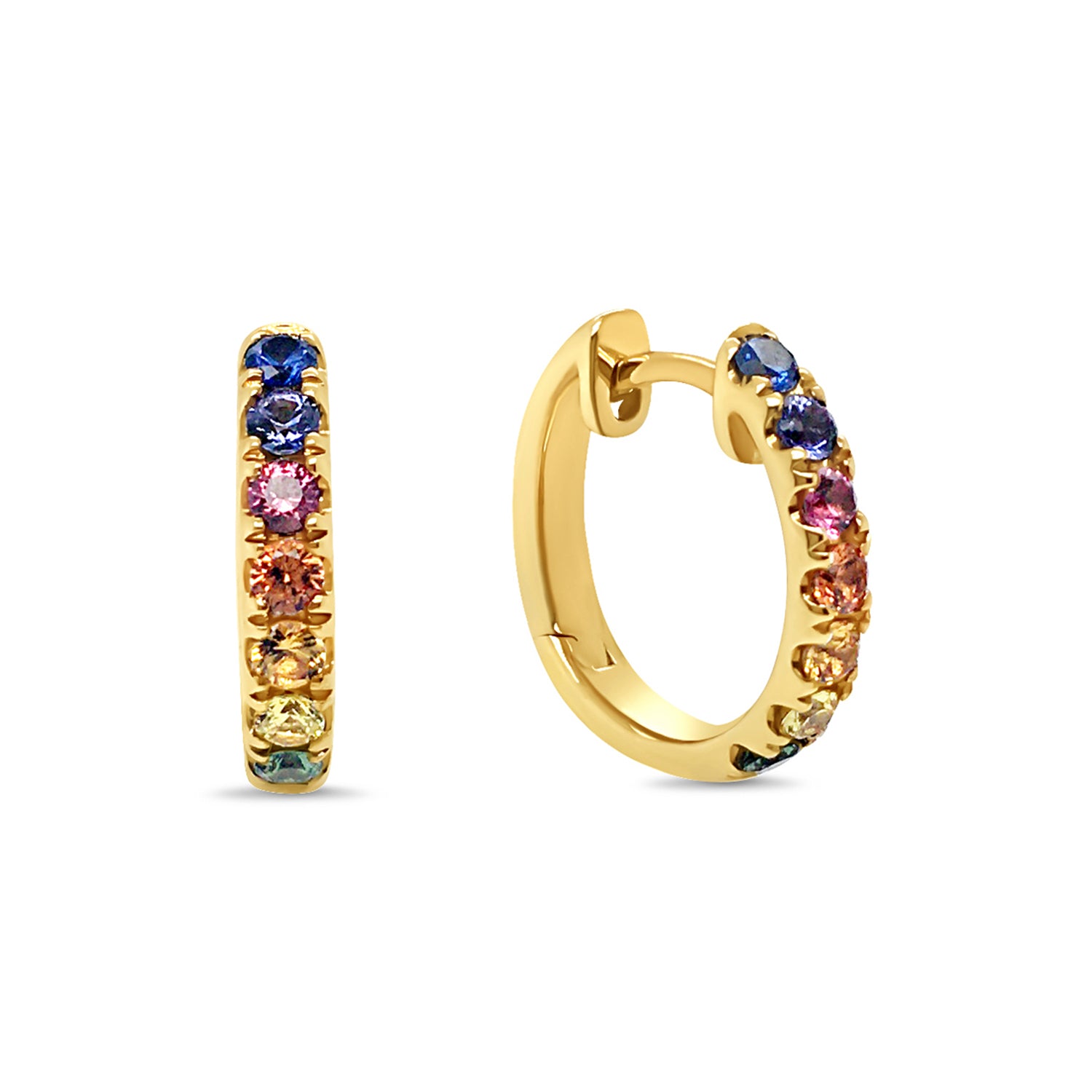 9ct Yellow Gold Rainbow Sapphire Huggie Hoop Earrings