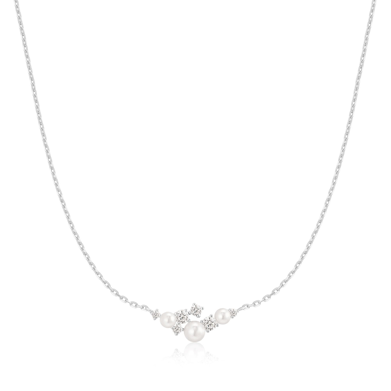 Sterling Silver CZ Pearl Star Cluster Necklace