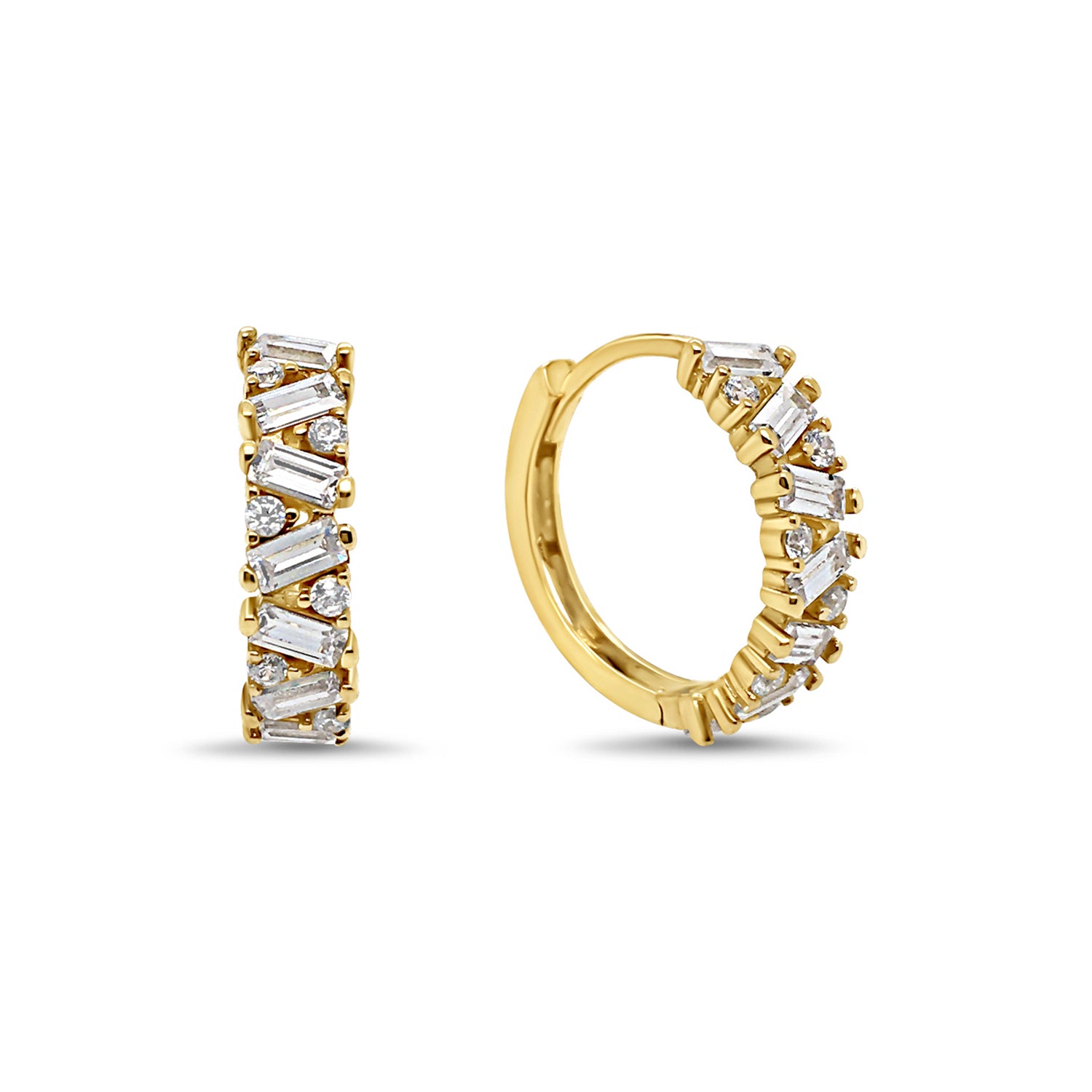 9ct Yellow Gold CZ Fancy Huggie Hoop Earrings